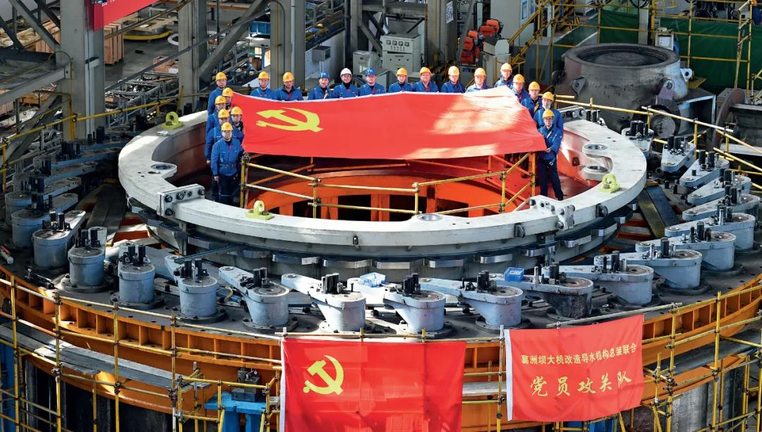 东方电气集团子企业东方电机水轮机分厂党员攻关队正在进行葛洲坝大机升级改造导水机构预装。习近平总书记强调,做好基层基础工作十分重要,只要每个基层党组织和每个共产党员都有强烈的宗旨意识和责任意识,都能发挥战斗堡垒作用、先锋模范作用,我们党就会很有力量,我们国家就会很有力量,我们人民就会很有力量,党的执政基础就能坚如磐石。近年来,中国东方电气集团有限公司(以下简称东方电气集团)党组认真贯彻落实习近平总书记要求,制定党建“三年攀高计划”,按照“一年夯基而上、两年跨越而行、三年登高而招”的思路,牢固树立大抓基层的鲜明导向,把重心放在基层、功夫下到基层、资源用到基层,通过夯基垒台助力攀上高质量党建新“高峰”,切实以高质量党建引领保障企业“十四五”高质量发展。