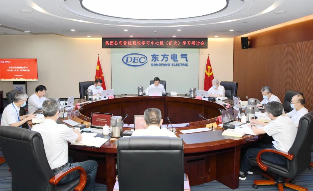 本网讯 9月15日,东方电气集团召开党组理论学习中心组(扩大)学习会,在前期全面系统学习基础上,就深入学习贯彻习近平总书记在省部级主要领导干部“学习习近平总书记重要讲话精神,迎接党的二十大”专题研讨班上的重要讲话精神,原原本本研读《习近平谈治国理政》第四卷、《习近平经济思想学习纲要》以及习近平总书记关于国有企业改革的重要论述开展集体学习,研讨贯彻落实的具体思路举措。党组书记、董事长俞培根主持学习会并作总结发言,中心组成员徐鹏、宋致远、刘智全、袁明刚参加学习会,中心组成员张继烈、张彦军、李忠军作主题发言。
