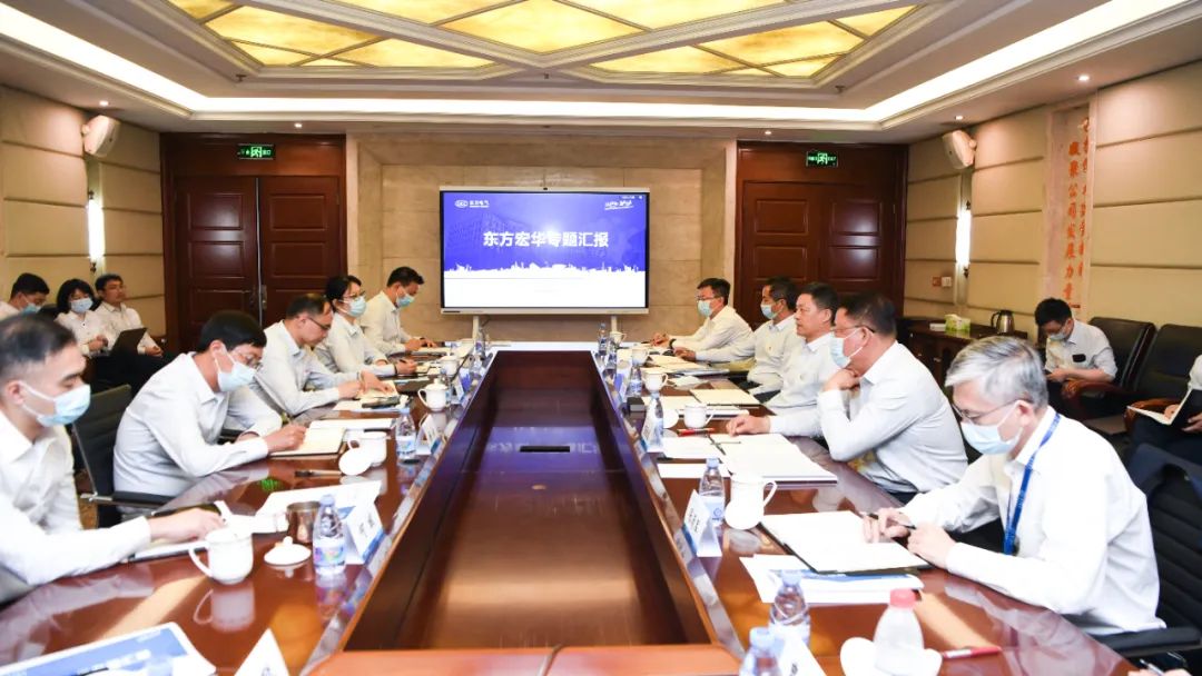 俞培根首先与东方宏华领导班子座谈,调研东方宏华党的建设、生产经营及主题教育开展情况,并围绕深化改革、科技创新、能源装备高质量发展等交流研讨。